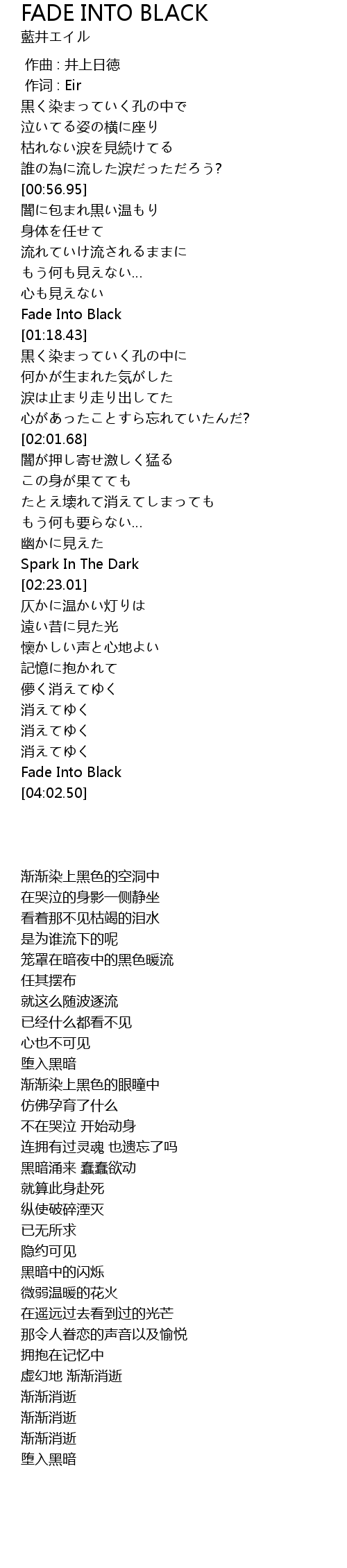 | [00:32.18] | 渐渐染上黑色的空洞中 |