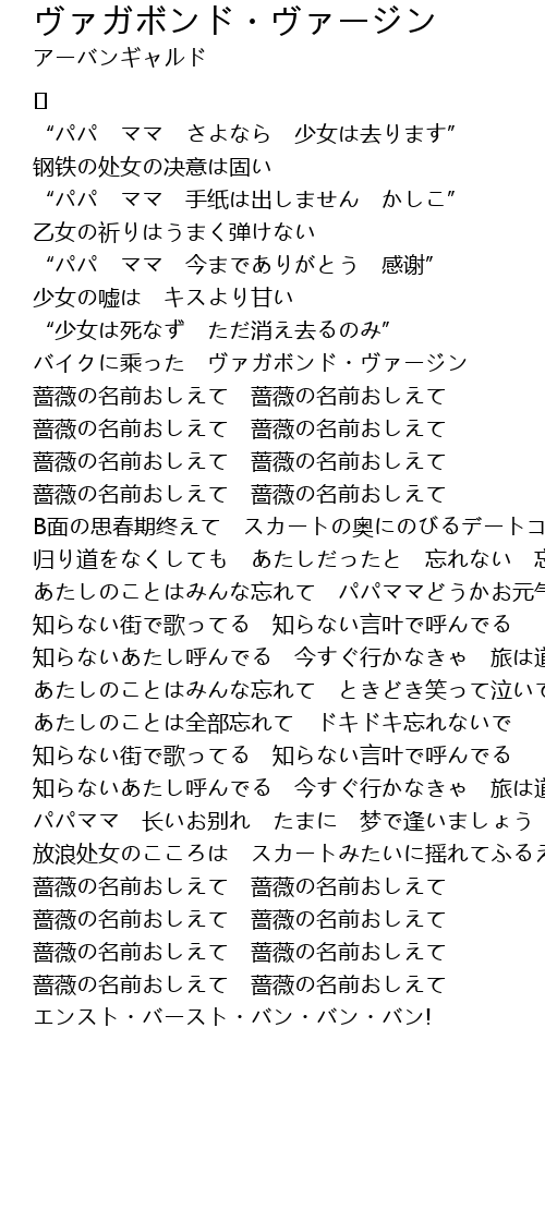 | 歌曲 | ヴァガボンド・ヴァージン |