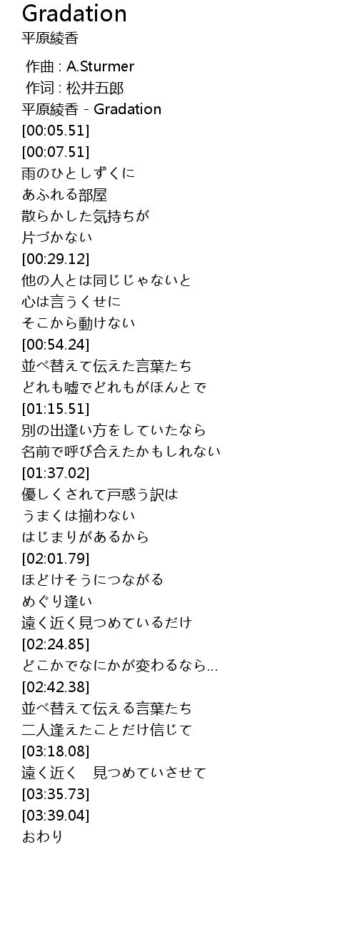 | [00:00.00] | 平原綾香 - Gradation |