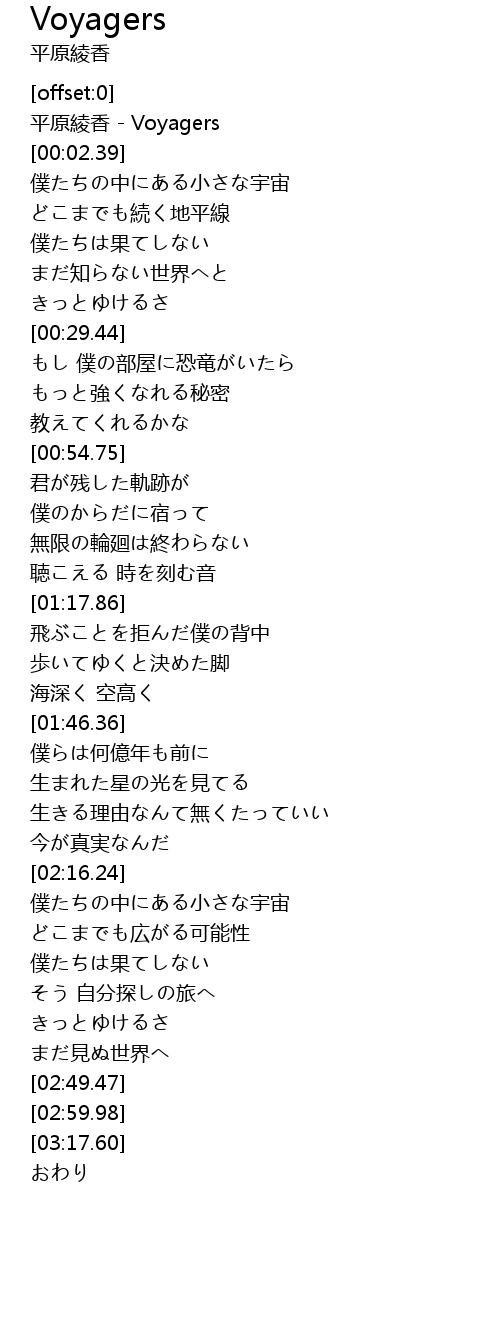 | [00:00.00] | píng yuán líng xiāng Voyagers |