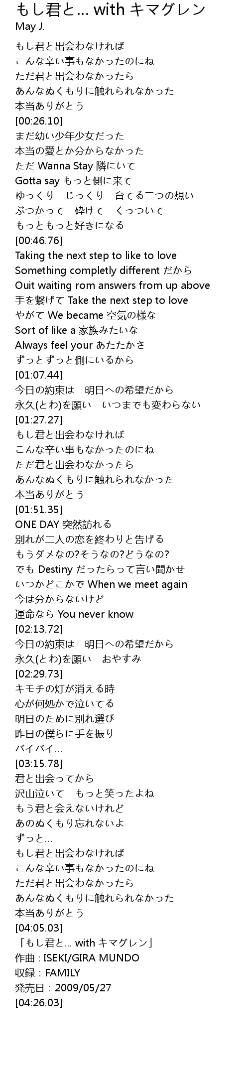 | [04:08.03] | 「もし君と... with キマグレン」 |