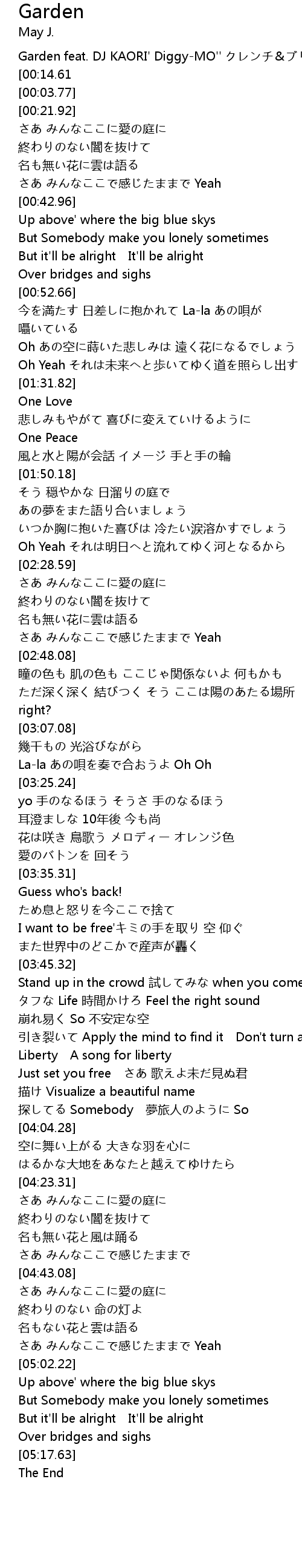 | [00:-0.80] | Garden feat. DJ KAORI' Diggy-MO'' クレンチ&ブリスタ |
