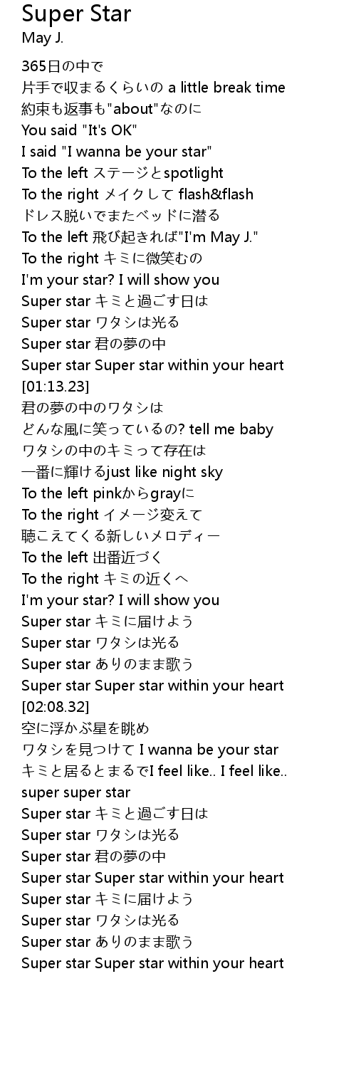 | [03:00.41] | Super star Super star within your heart |