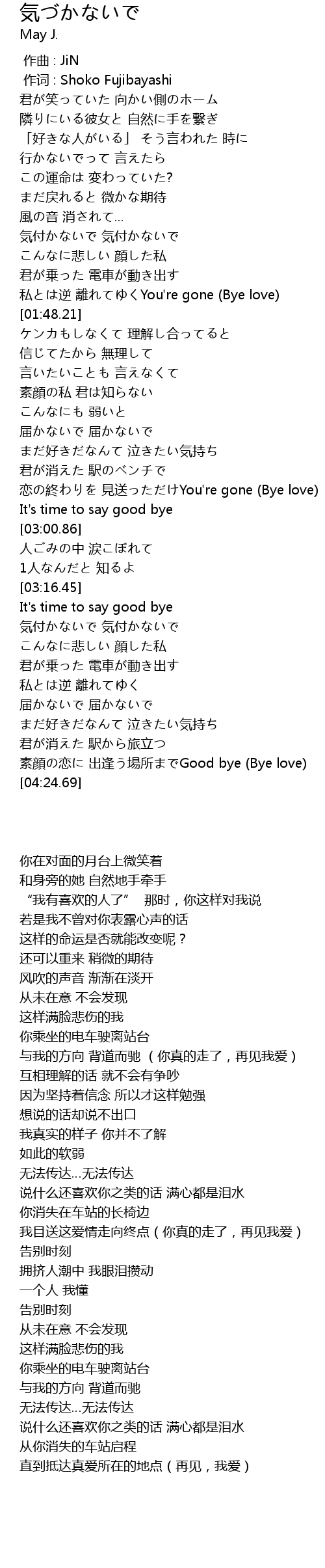 | [02:47.58] | liàn zhōng jiàn sòng You' re gone Bye love |