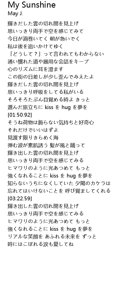 | [01:43.25] | 選んだ旅立ちに kiss を hug を夢を |