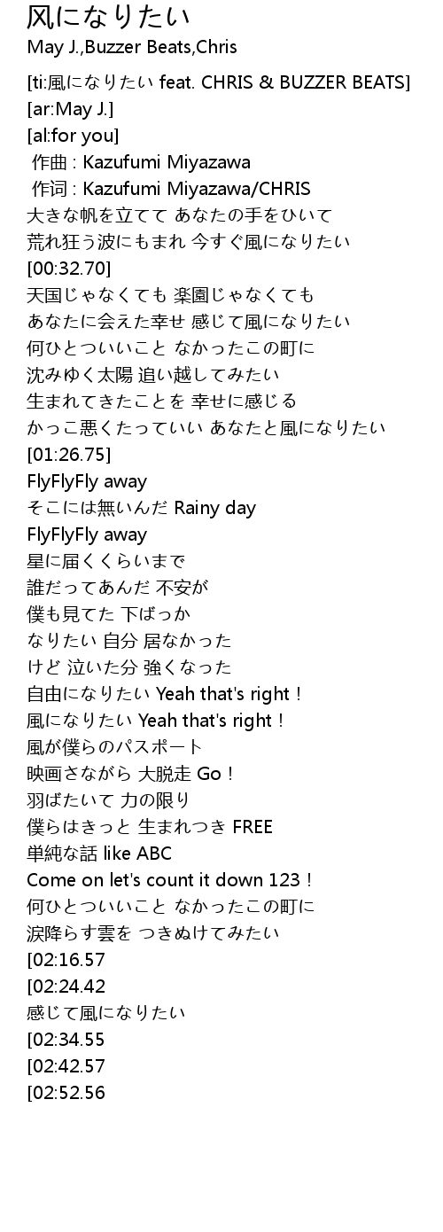 | [ti:風になりたい feat. CHRIS & BUZZER BEATS] | |