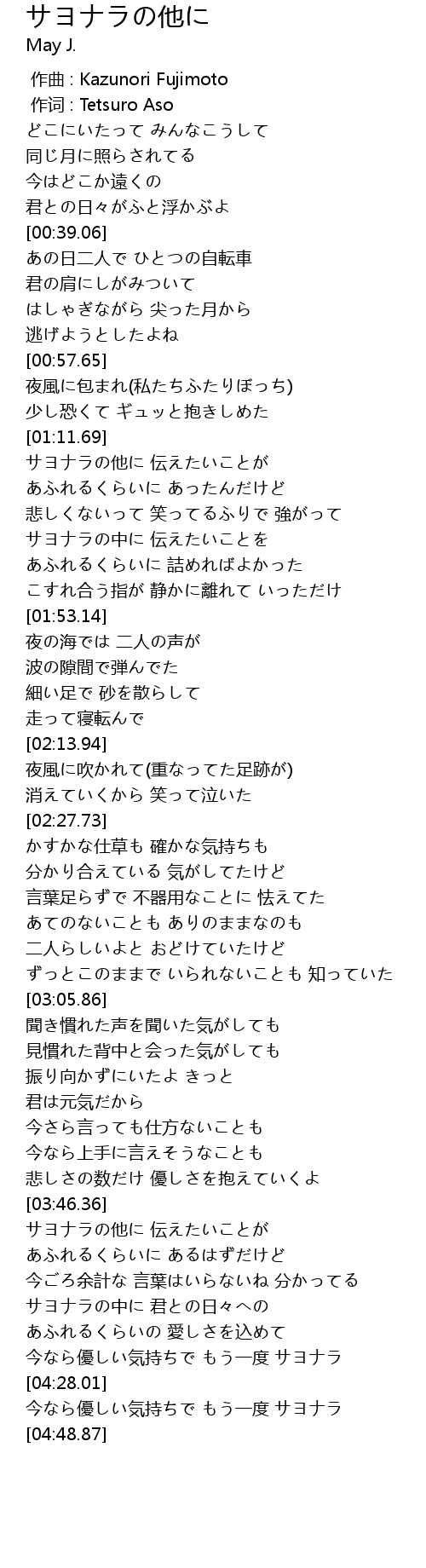 | [04:35.16] | 今なら優しい気持ちで もう一度 サヨナラ |