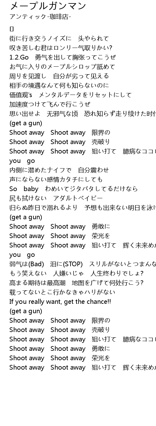 | Shoot away Shoot away 狙い打て 臆病なココロめがけて | |