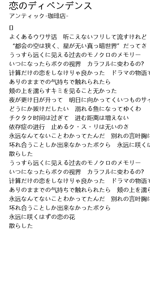 | 永远なんてないことわかってたんだ 别れの言叶胸に募る | |