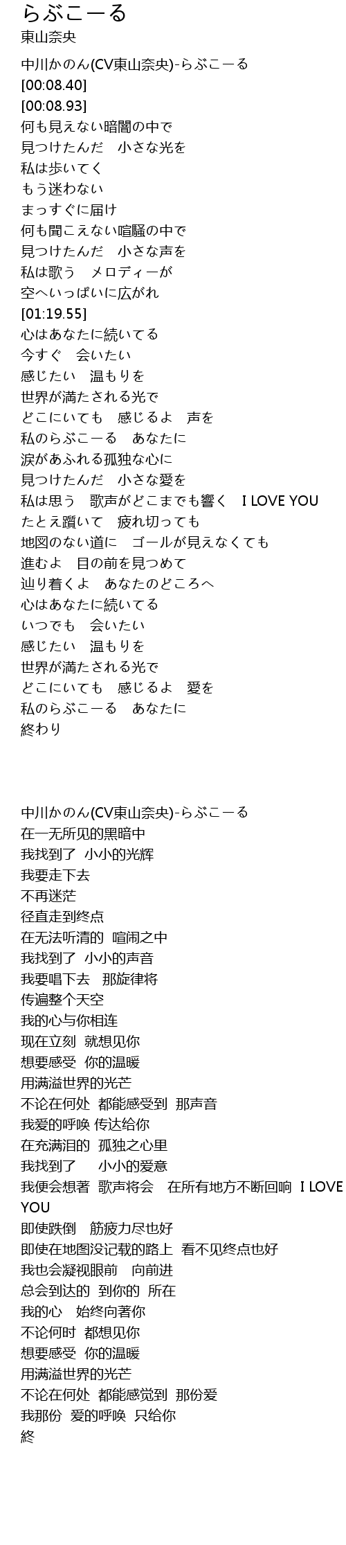 | [00:01.48] | 中川かのん(CV東山奈央)-らぶこーる |