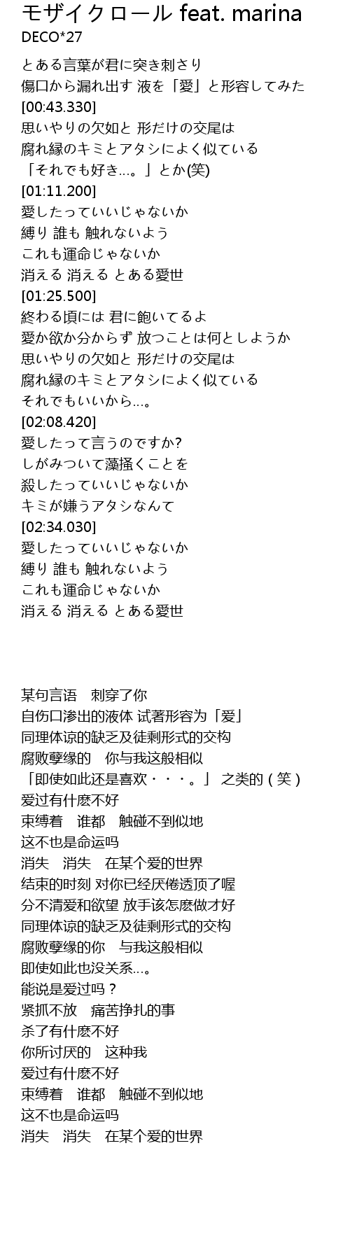 | [02:43.950] | 消失 消失 在某个爱的世界 |