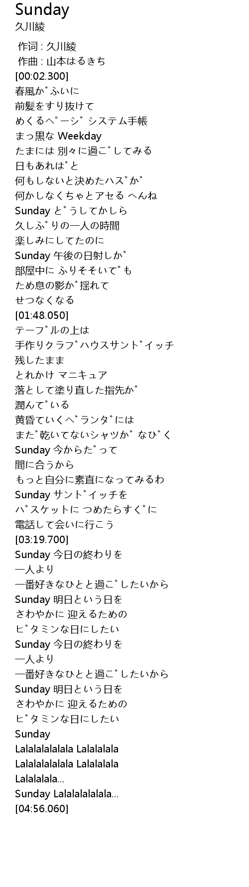 | [04:20.000] | Sunday 明日という日を |