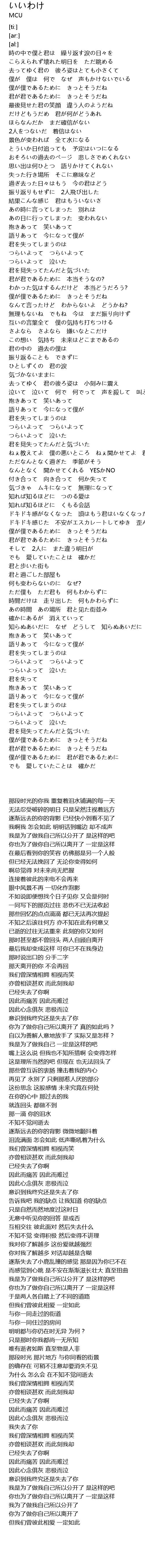 | 歌曲 | いいわけ |