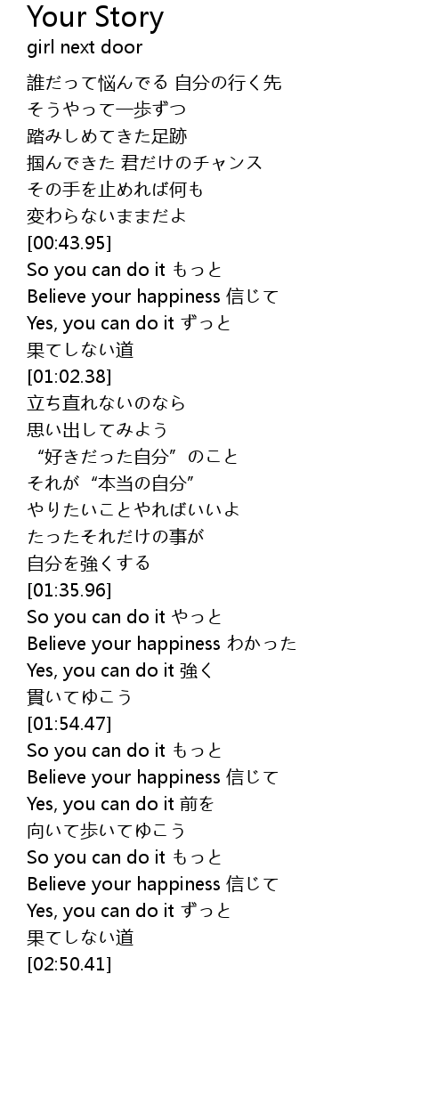 | [00:31.73] | 掴んできた 君だけのチャンス |