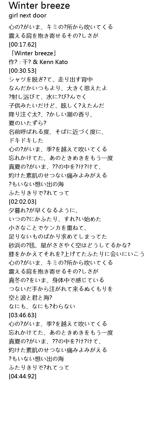 | [00:00.00] | 心の?がいま、キミの?所から吹いてくる |