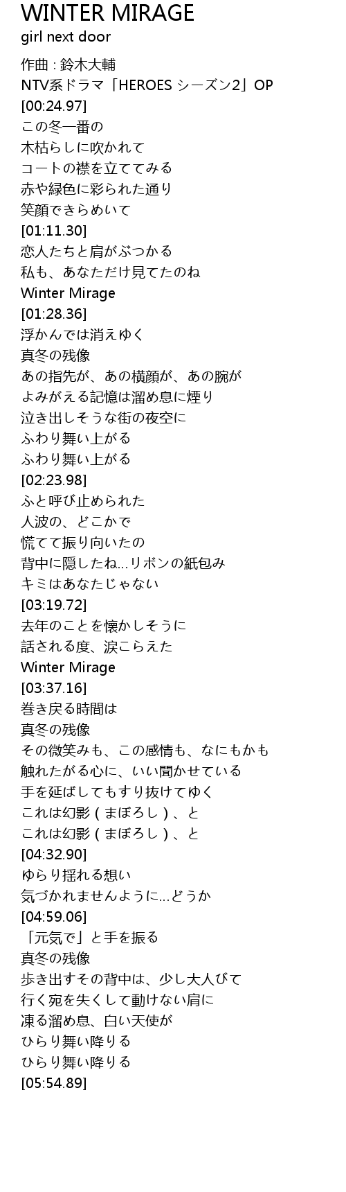 | [00:16.97] | NTV系ドラマ「HEROES シーズン2」OP |