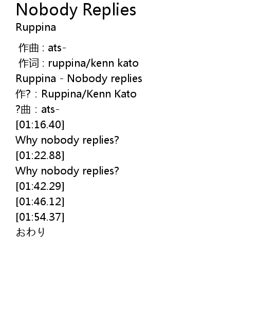 | [00:00.00] | 作词 : ruppina/kenn kato |