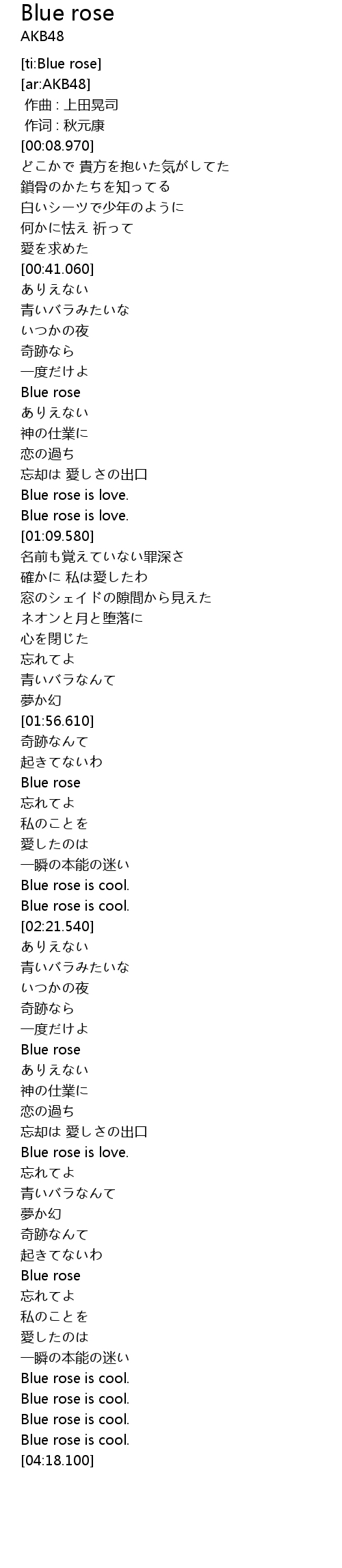 | [01:04.490] | Blue rose is love. |