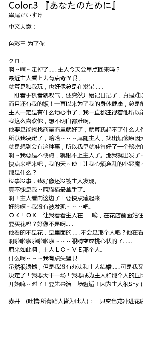| 歌曲 | Color.3 『あなたのために』 |