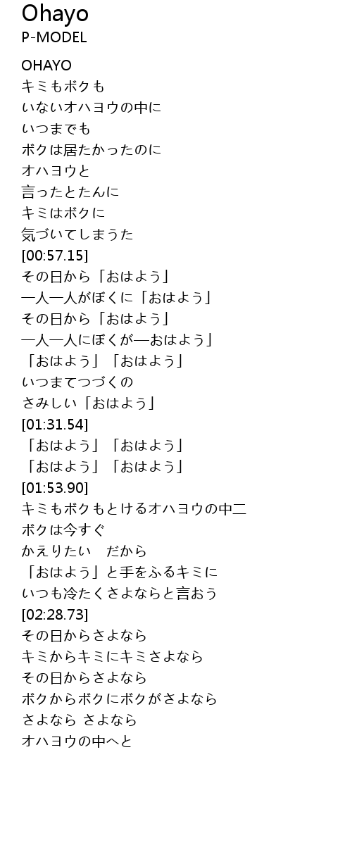 | [01:14.48] | 一人一人にぼくが—おはよう」 |
