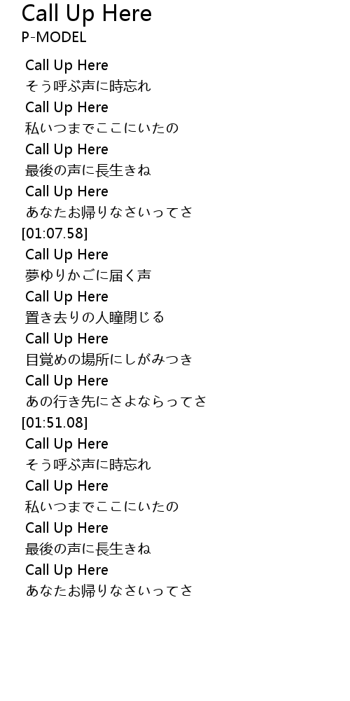 | [01:45.46] | Call Up Here |
