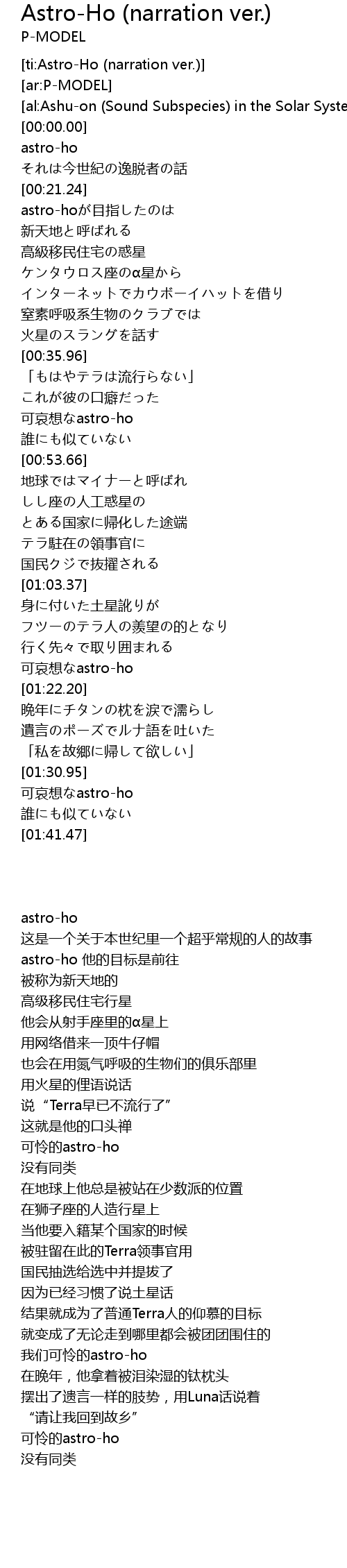 | [00:22.25] | astro-ho 他的目标是前往 |