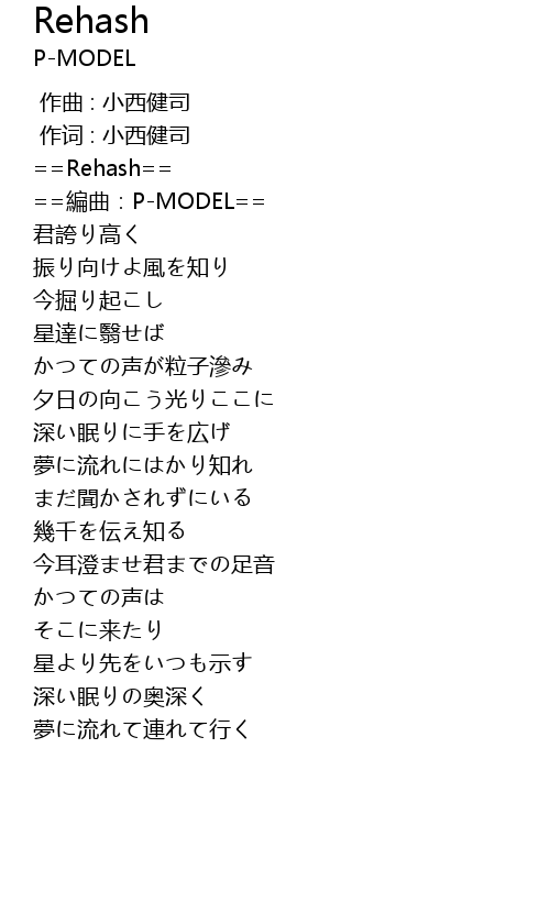 | [00:09.208] | ==編曲:P-MODEL== |