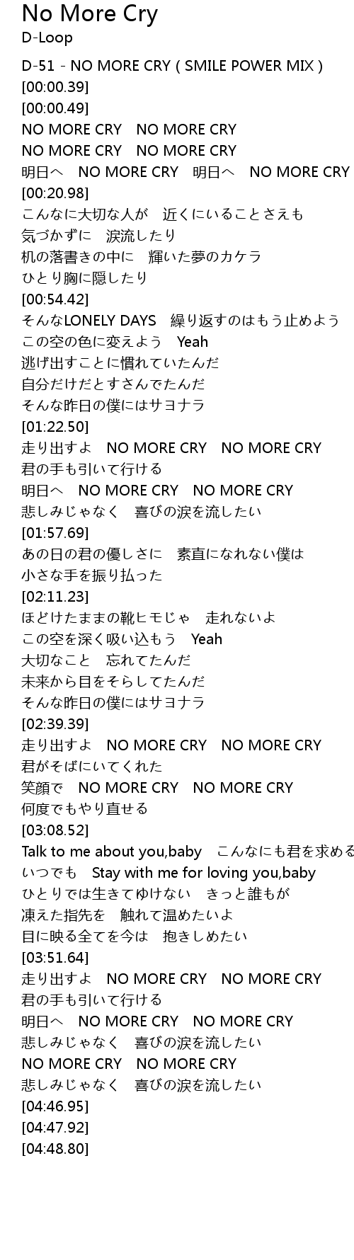 | [04:29.57] | NO MORE CRY NO MORE CRY |