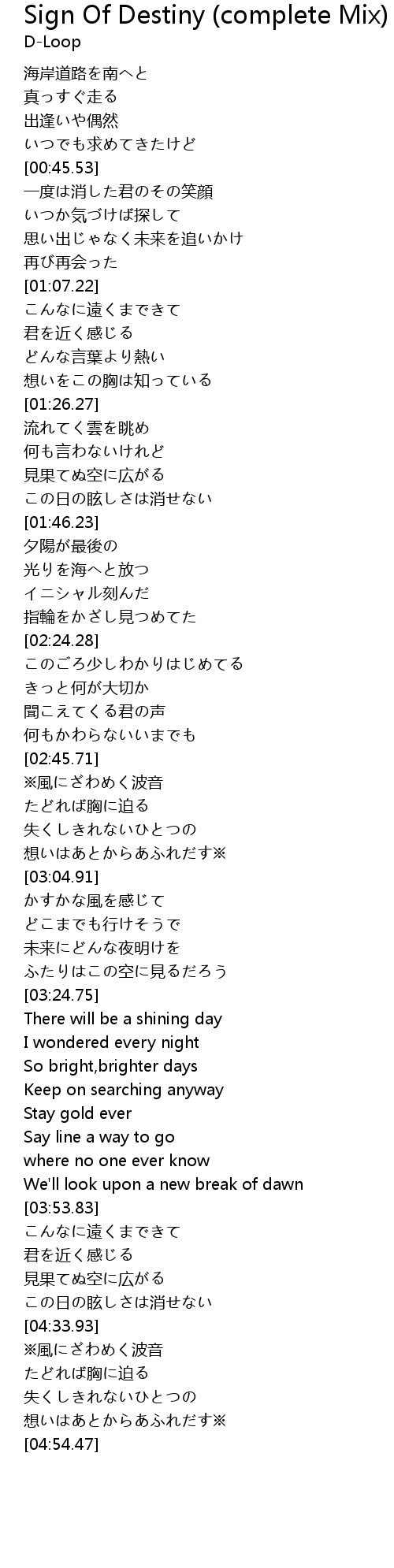 | 歌曲 | Sign Of Destiny (complete Mix) |