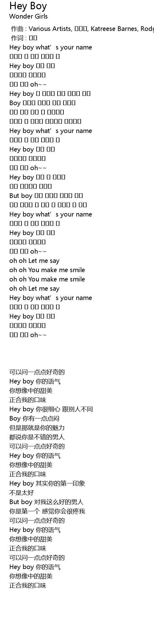 | [00:22.16] | Hey boy 你很细心 跟别人不同 |