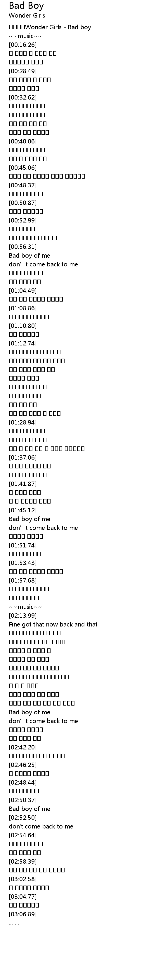 | [00:00.97] | 원더걸스Wonder Girls - Bad boy |