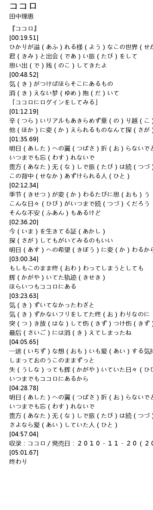| [04:58.04] | 収录:ココロ/発売日:2010-11-20(2011-11-19再発売) |