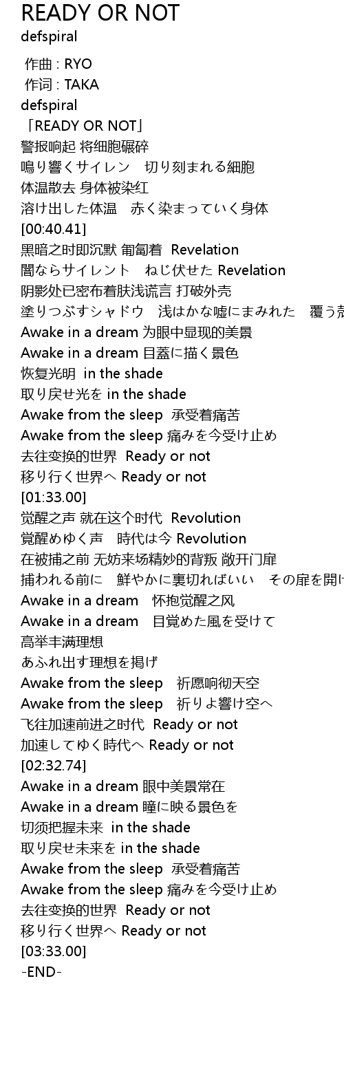 | [02:23.89] | fei wang jia su qian jin zhi shi dai Ready or not |