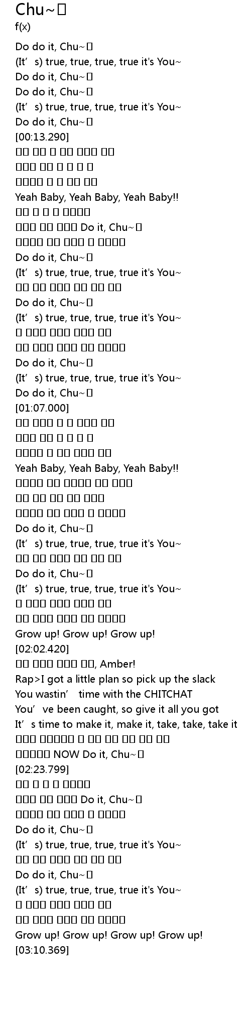 | [02:35.359] | 기다려 왔던 세상에 Do it, Chu~♡ |