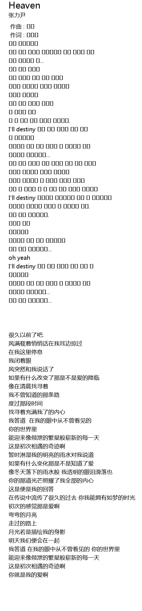 | [04:42.890] | I'll destiny 나의 눈에 보이지 않던 너의 그 세상속에선 |