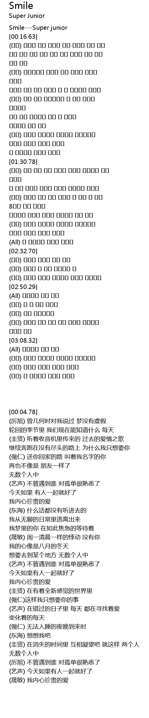 | [00:04.78] | SmileSuper junior |