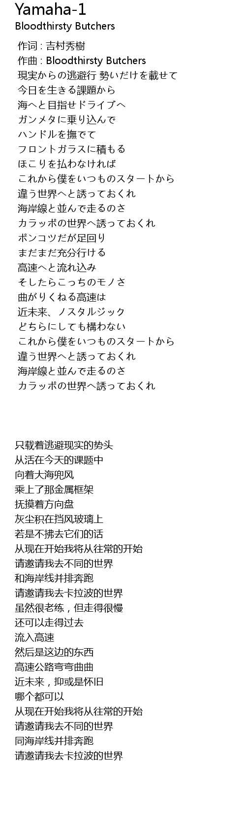 | [00:01.000] | 作曲 : Bloodthirsty Butchers |