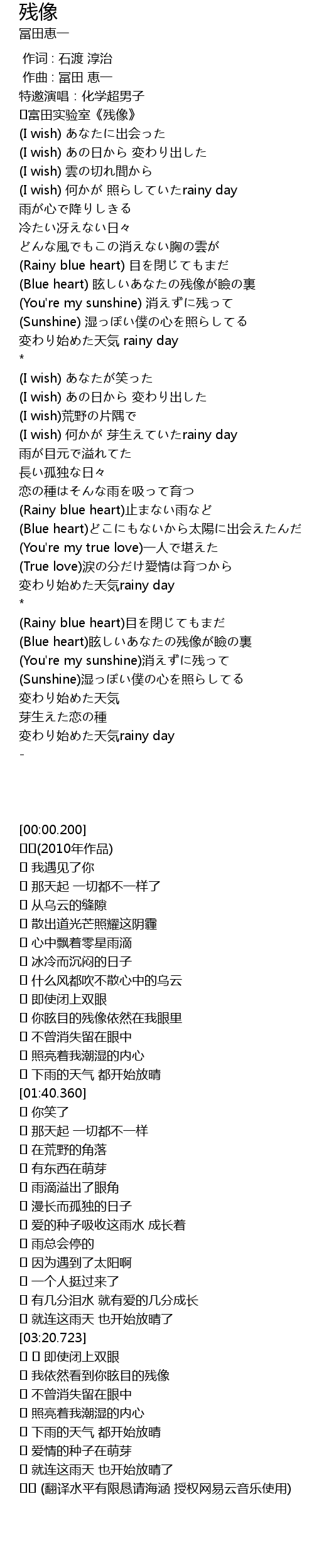 | [03:46.914] | 我依然看到你眩目的残像 |