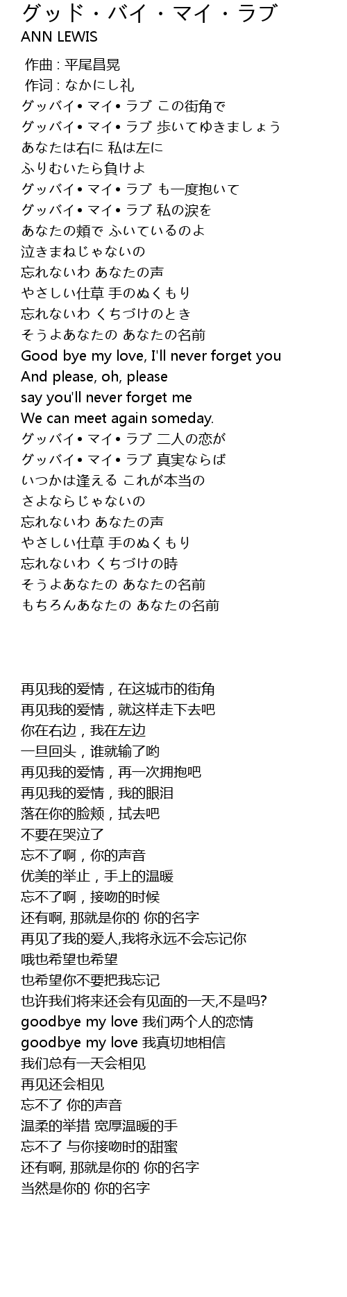 | [00:35.90] | グッバイ• マイ• ラブ 歩いてゆきましょう |