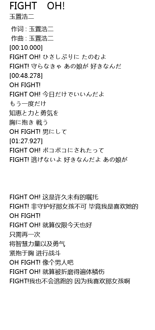 | [01:41.386] | FIGHT OH! 就算被折磨得遍体鳞伤 |