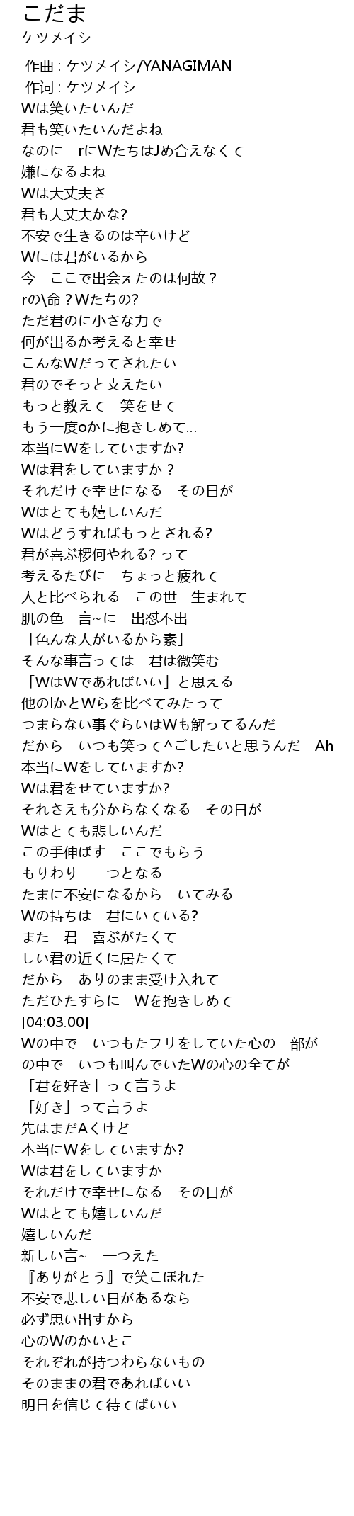 | [03:59.99] | ただひたすらに Wを抱きしめて |
