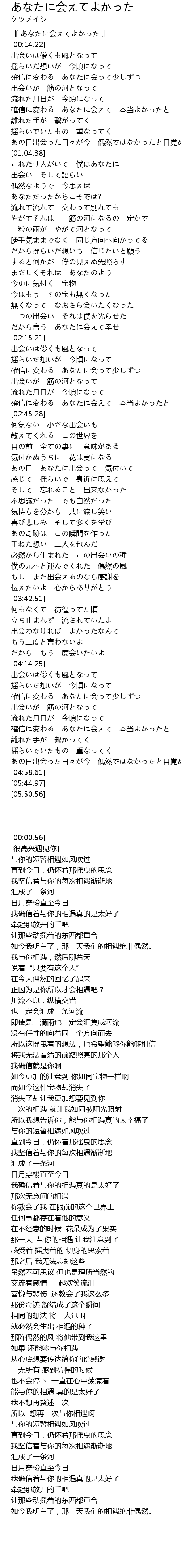| [00:00.56] | 『 あなたに会えてよかった 』 |