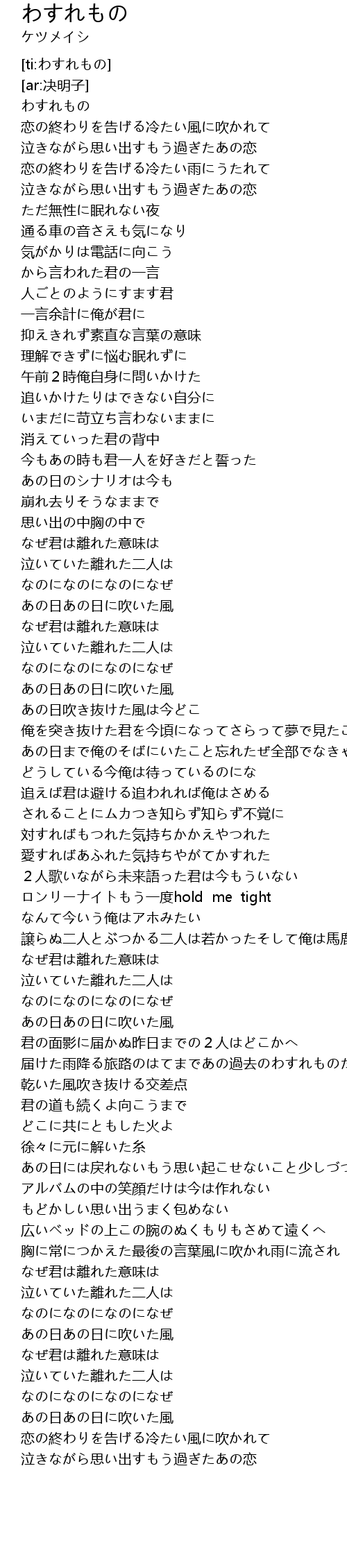 | [04:37.59] | 恋の終わりを告げる冷たい風に吹かれて |