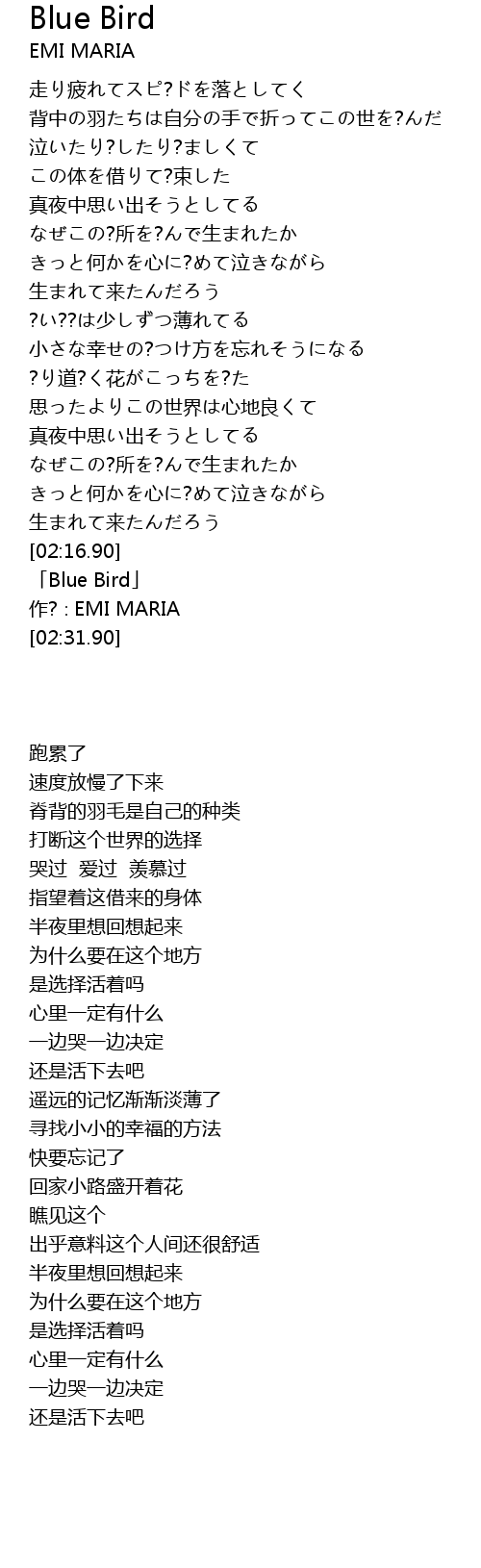 | [02:19.90] | Blue Bird |