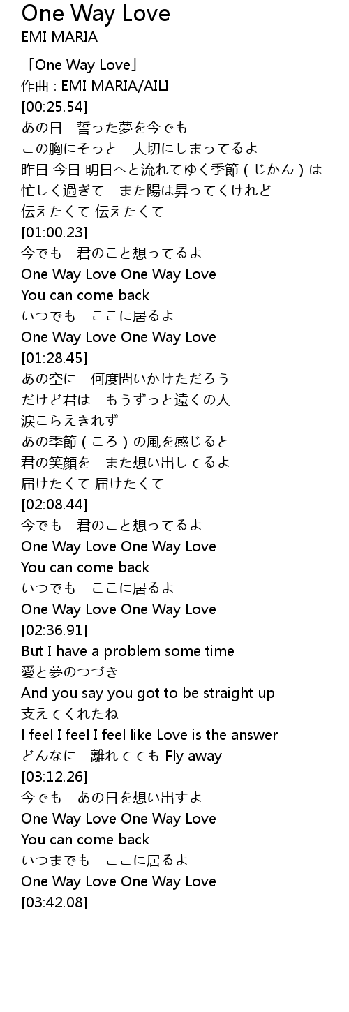| [00:01.54] | 「One Way Love」 |