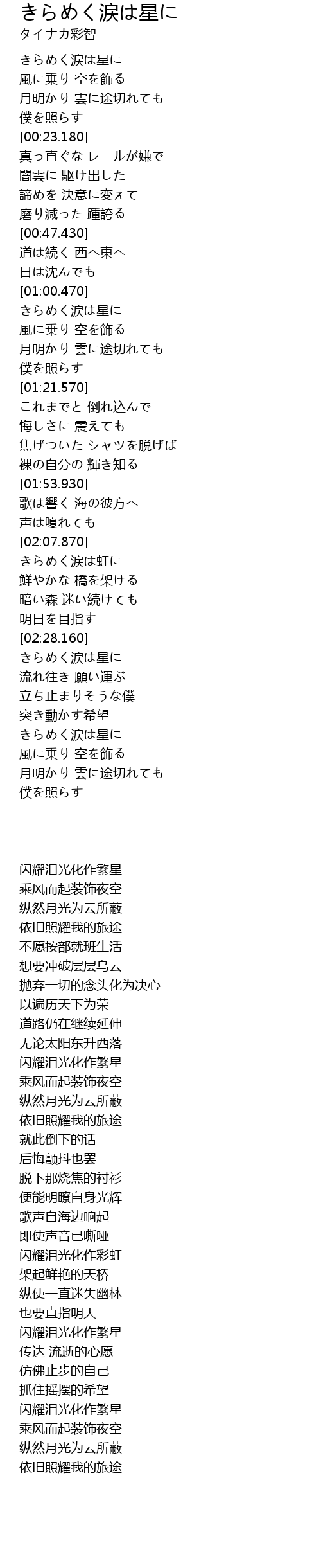 きらめく涙は星に |