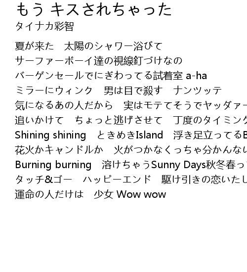 | [00:19.02] | 夏が来た 太陽のシャワー浴びて |
