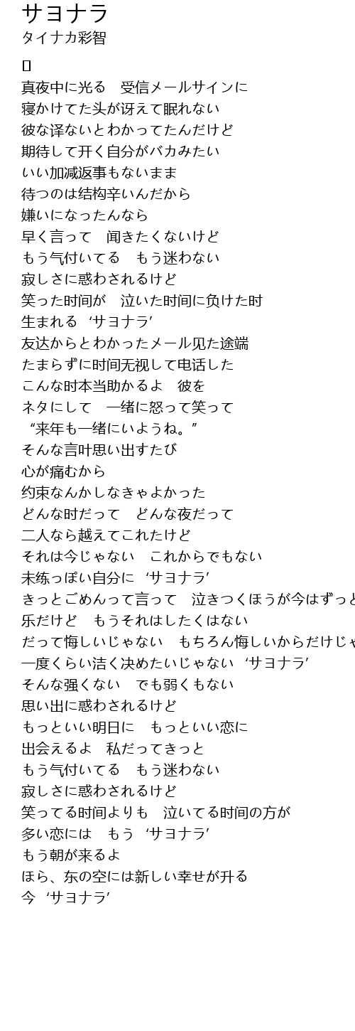 | 歌曲 | サヨナラ |