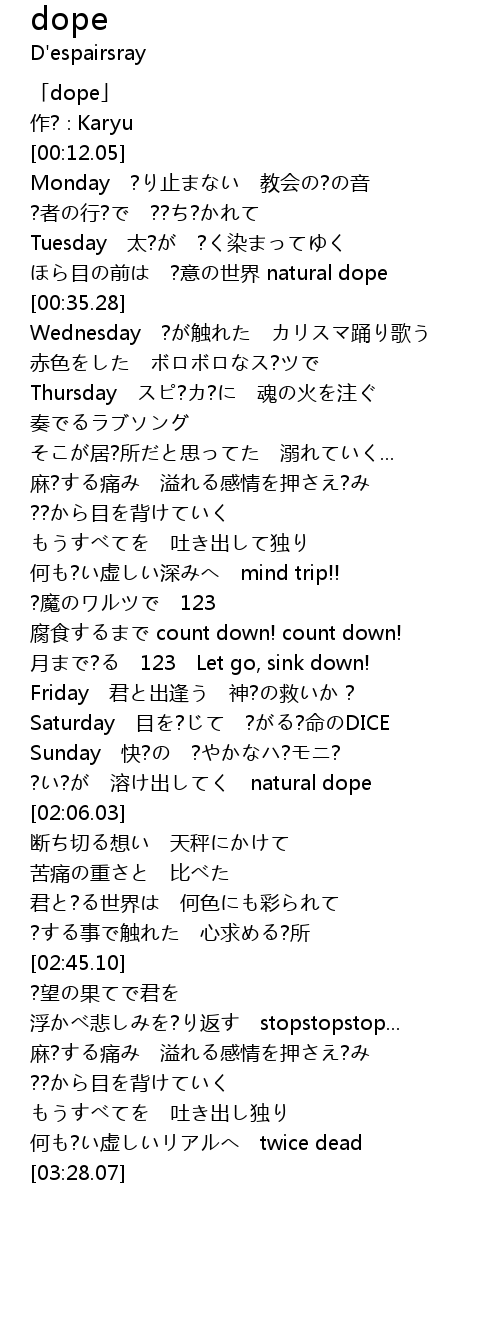 | [02:00.44] | ?い?が 溶け出してく natural dope |