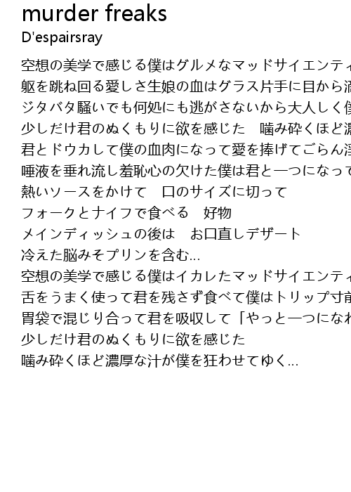 | 空想の美学で感じる僕はグルメなマッドサイエンティスト 心臓をメインディッシュに生温い血を飲み干して | |